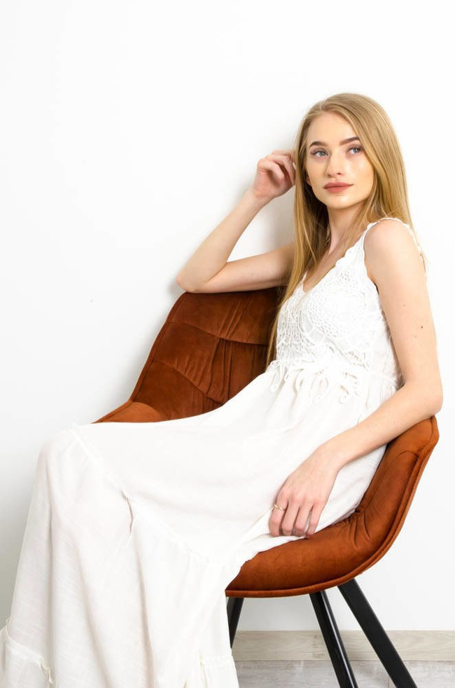 BIAŁA SUKIENKA MAXI NA RAMIĄCZKACH Z AŻUROWĄ GÓRĄ