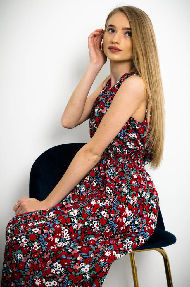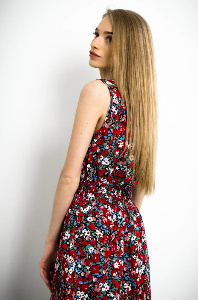 KWIECISTA DŁUGA SUKIENKA Z KOPERTOWYM DEKOLTEM