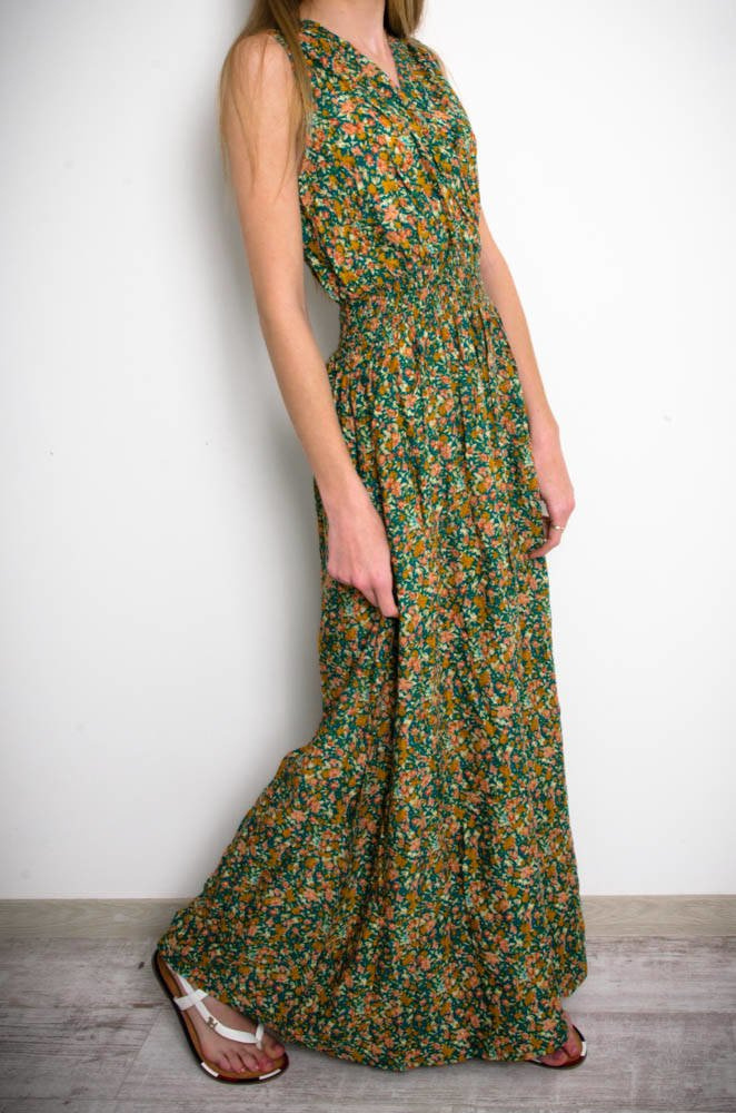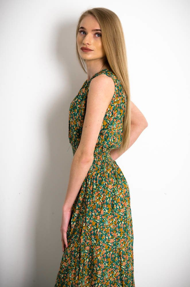 ZIELONA SUKIENKA MAXI W KWIATY-KOPERTOWY DEKOLT
