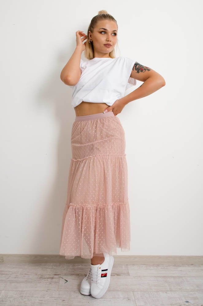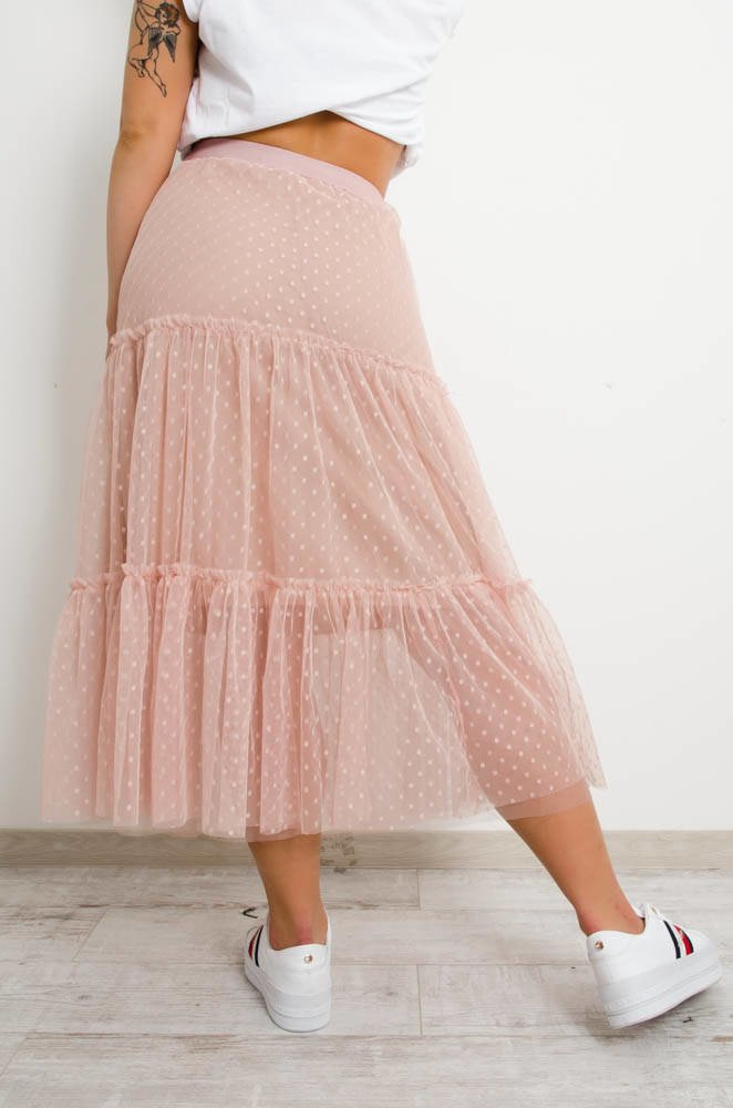 RÓŻOWA SPÓDNICA TIULOWA PLUMETI-MIDI