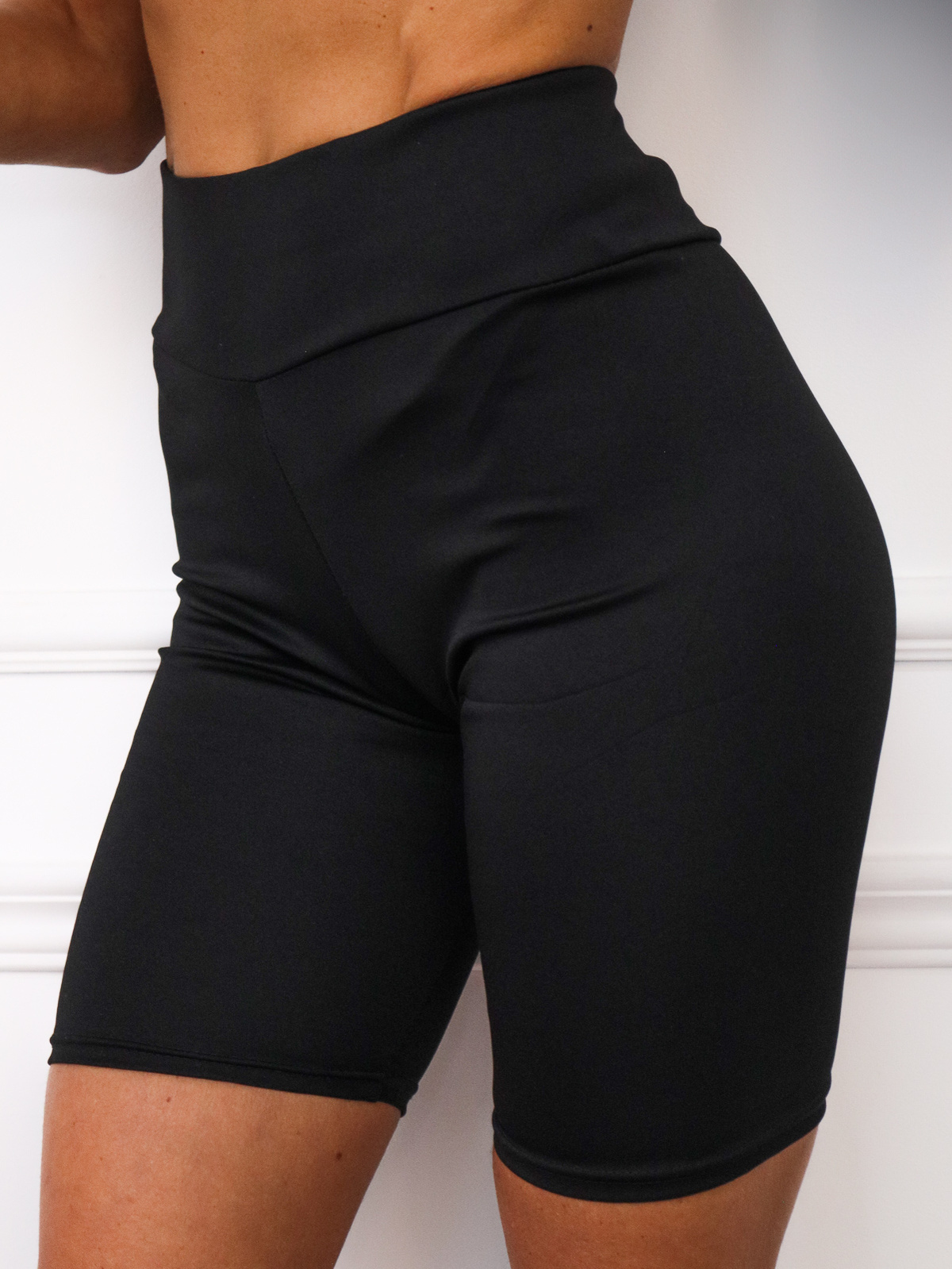 CZARNE SATYNOWE SZORTY- KOLARKI BIKER