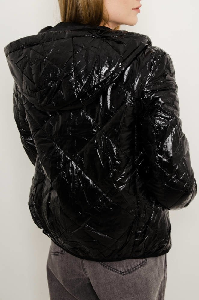 CZARNA PIKOWANA KURTKA Z KAPTUREM