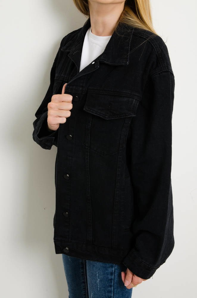 CZARNA KURTKA JEANSOWA Z NASZYWKĄ NA PLECACH