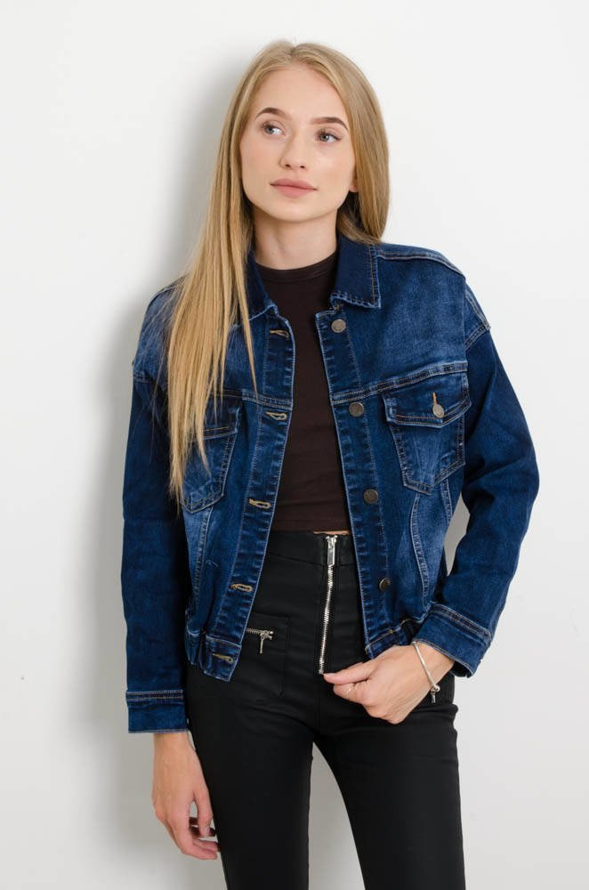 GRANATOWA KURTKA JEANSOWA BOMBERKA ZE ŚCIĄGACZEM