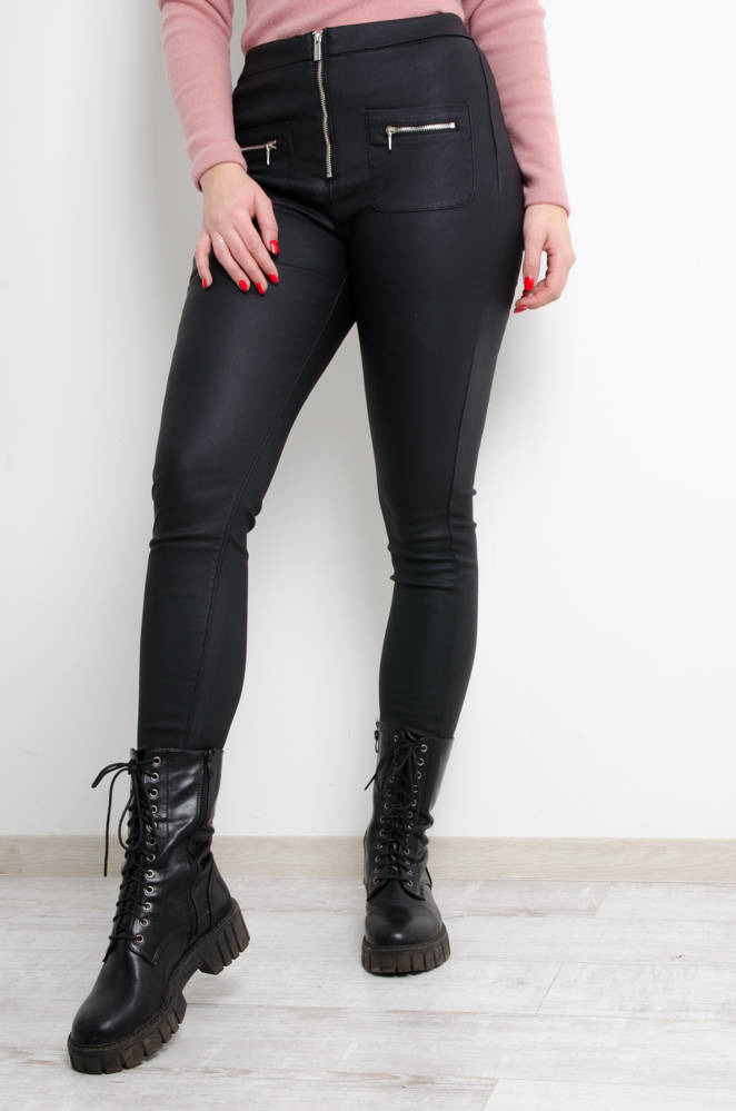 CZARNE SPODNIE WOSKOWANE Z KIESZONKAMI ZAMKI - WYSOKI STAN
