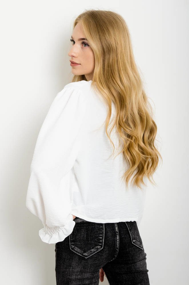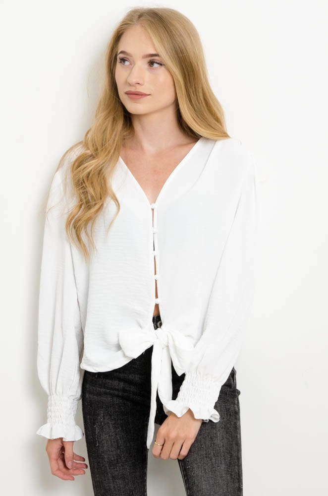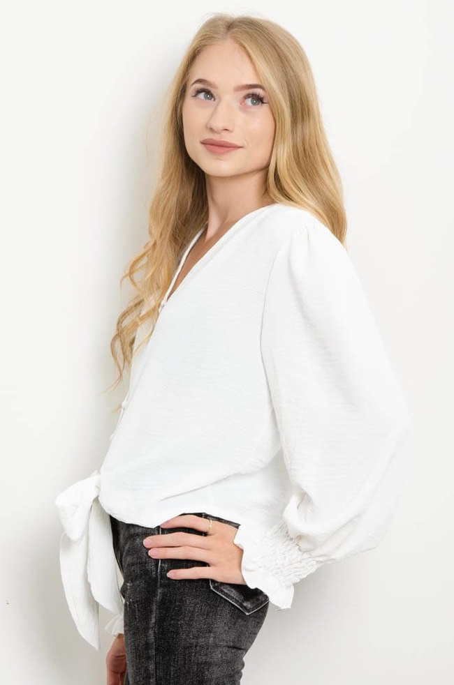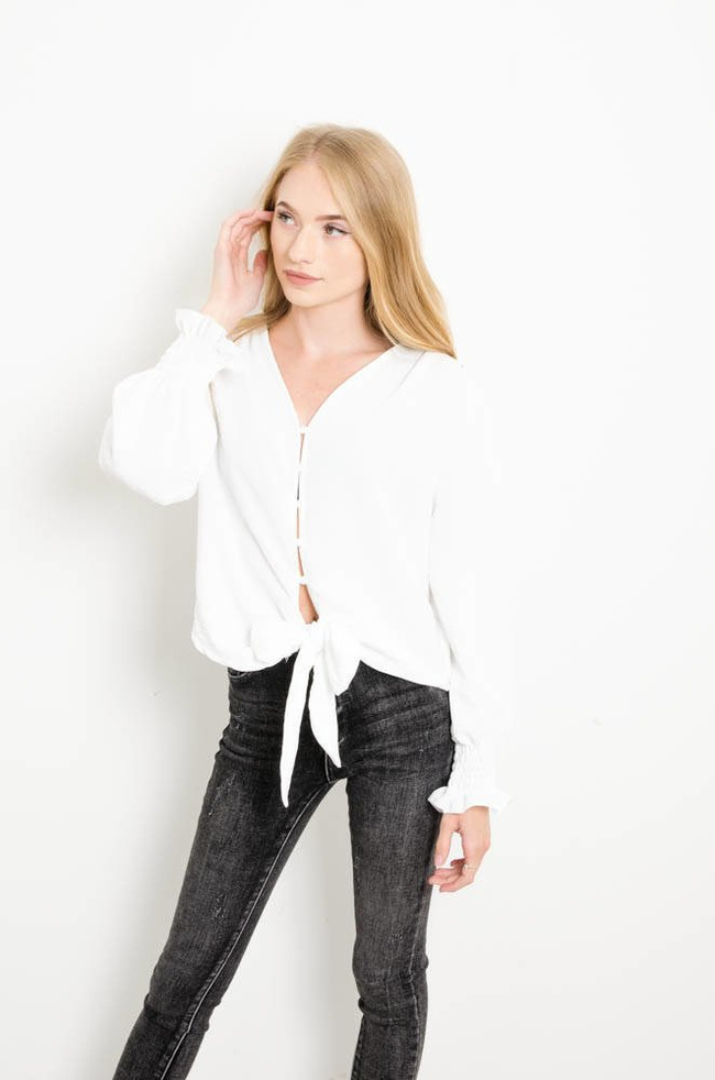 BIAŁA ZAPINANA BLUZKA Z WIĄZANIEM NA DOLE.