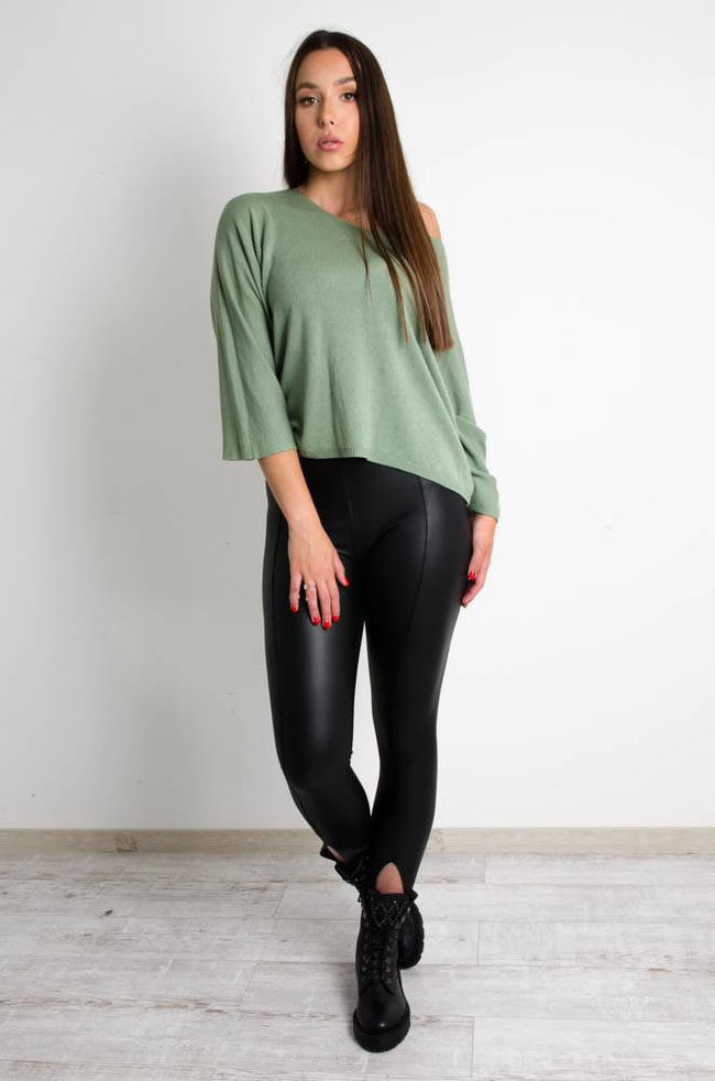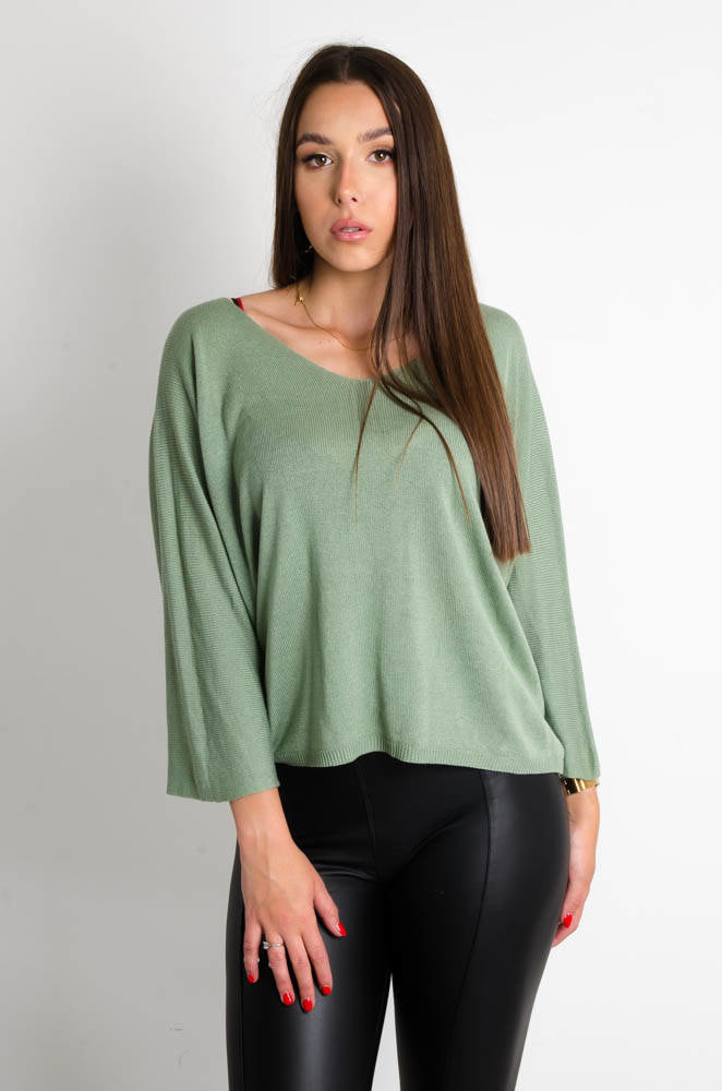 ZIELONY SWETEREK NIETOPERZ Z DEKOLTEM W SEREK.