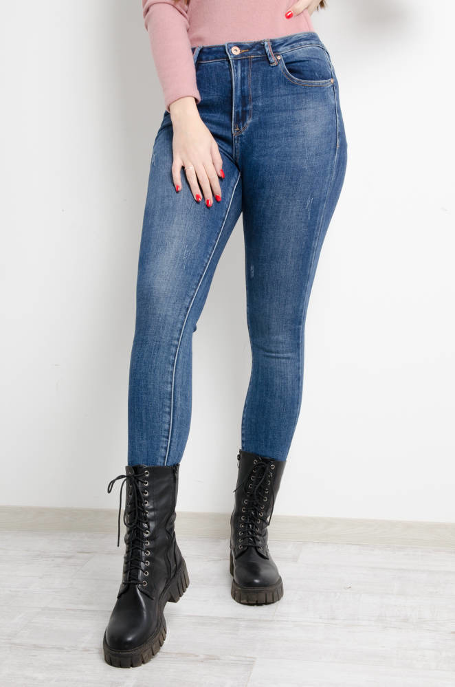 CIEMNE SPODNIE JEANSOWE Z DELIKATNYMI PRZETARCIAMI.
