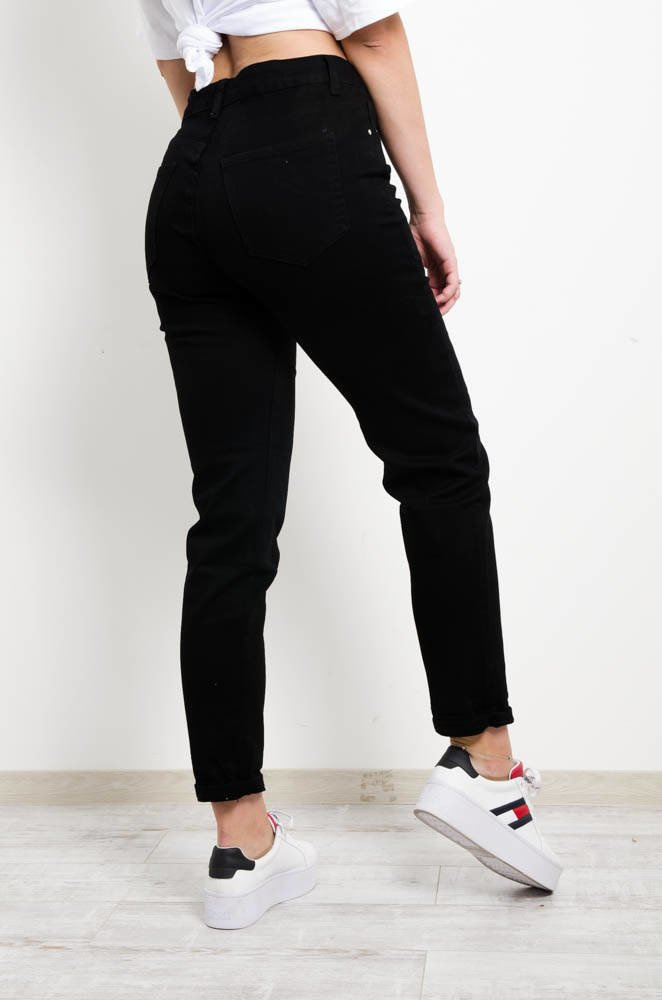 CZARNE SPODNIE JEANSOWE MOM STRETCH-WYSOKI STAN