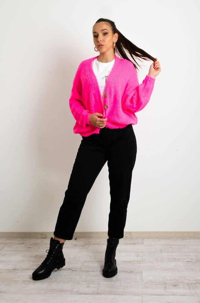KRÓTKI KARDIGAN SWETER ZAPINANY NA GUZIKI Z DEKOLTEM W SEREK