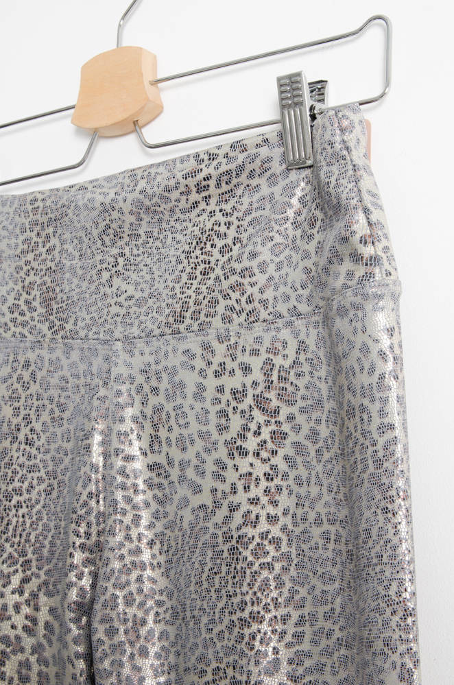 SREBRNE POŁYSKUJĄCE LEGGINSY W PANTERKĘ-WYSOKI STAN
