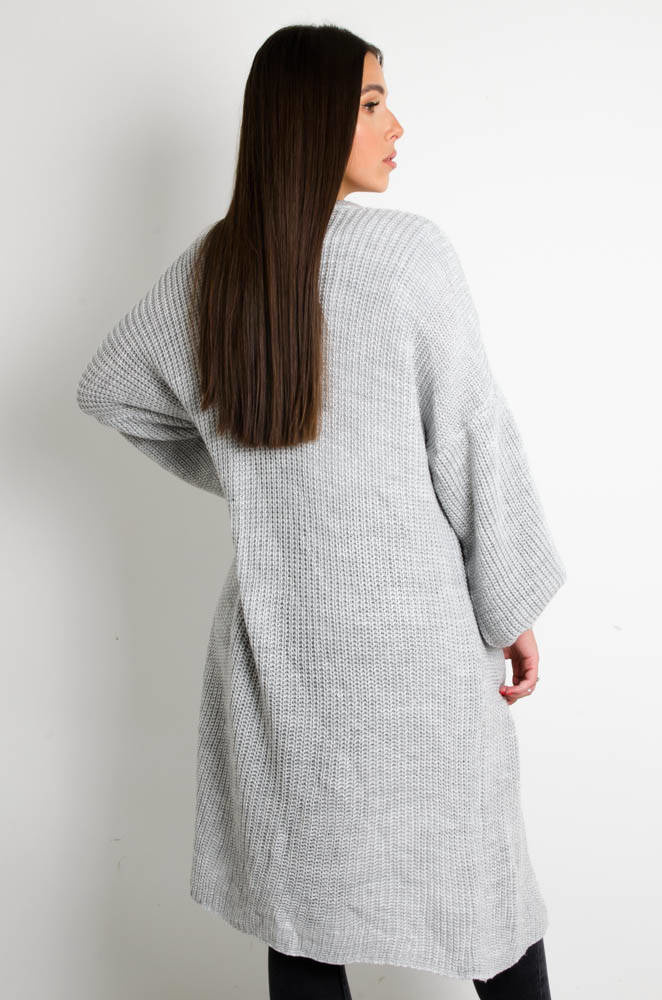 SZARY DŁUGI SWETER KARDIGAN Z SZEROKIMI RĘKAWAMI