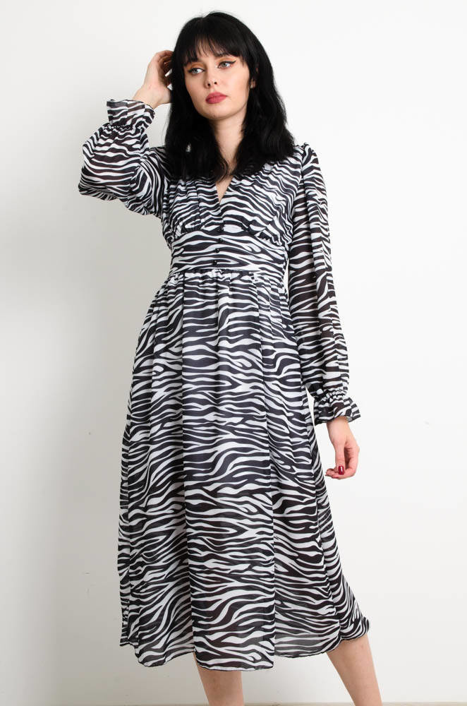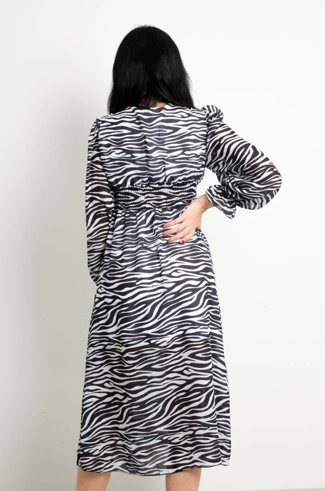 BIAŁO-CZARNA SUKIENKA MAXI Z MOTYWEM ZEBRY
