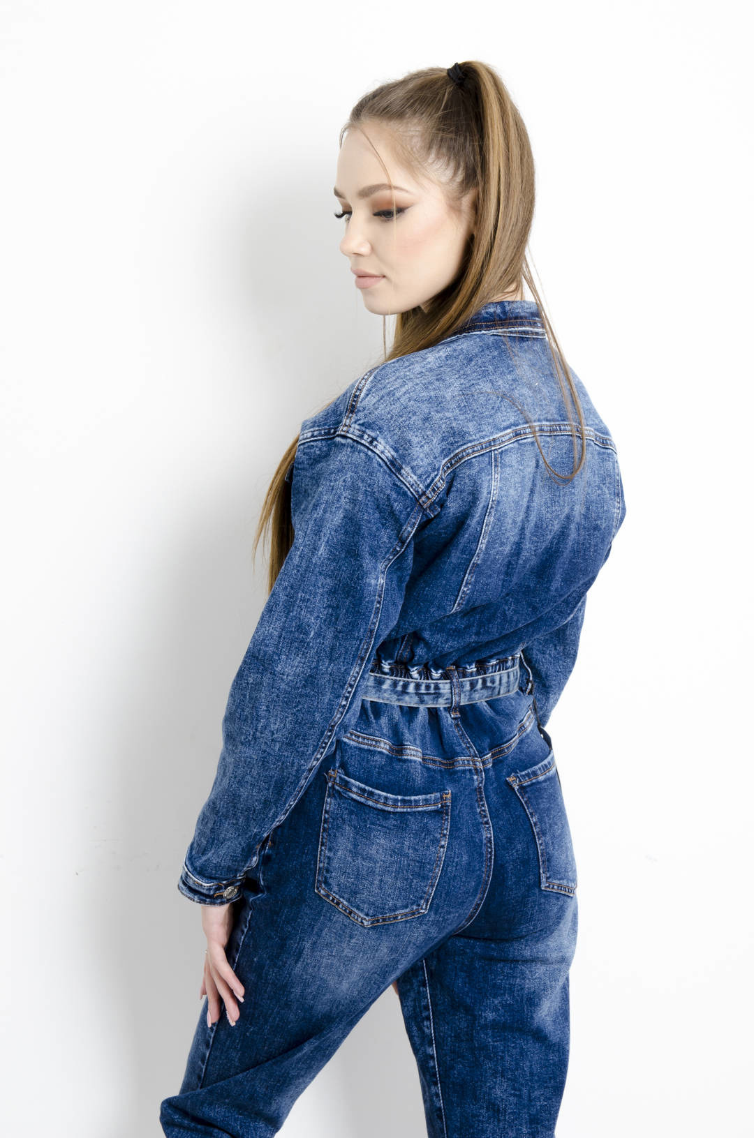 DŁUGI GRANATOWY KOMBINEZON JEANSOWY