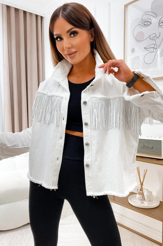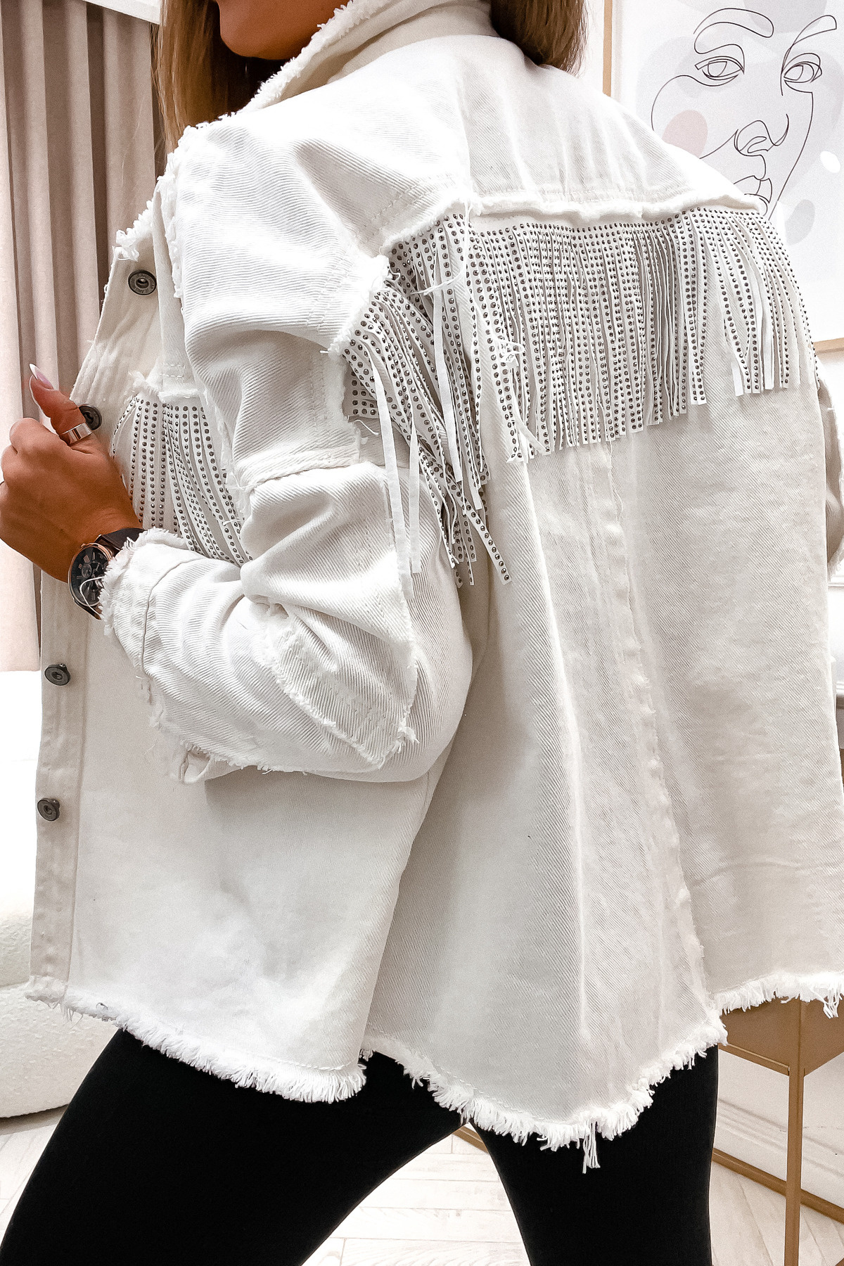 BIAŁA KURTKA JEANSOWA Z FRĘDZLAMI