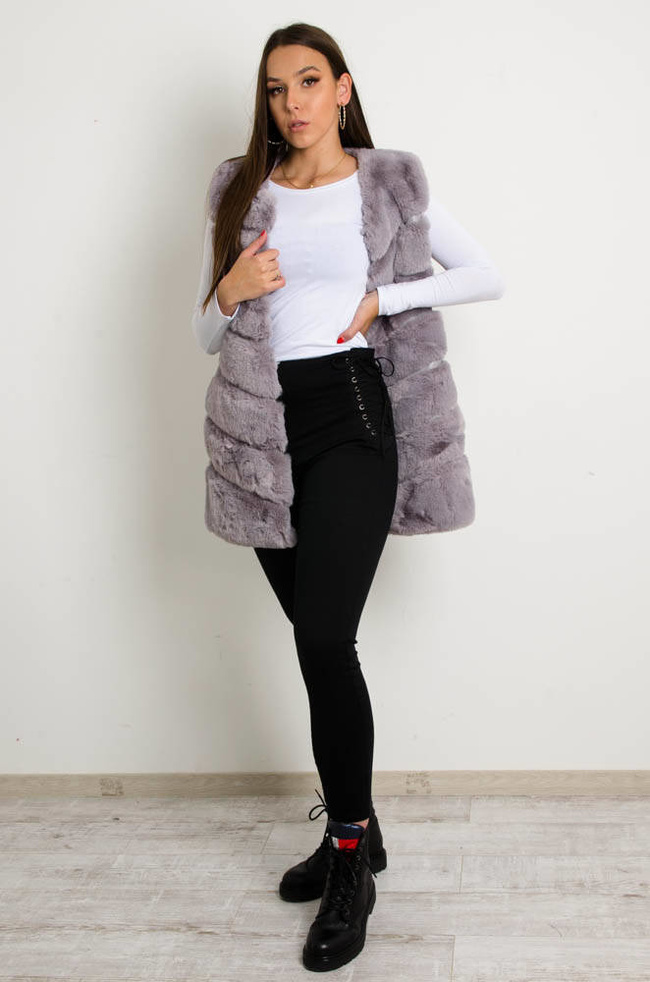 SZARA FUTRZANA KAMIZELKA BEZ KAPTURA