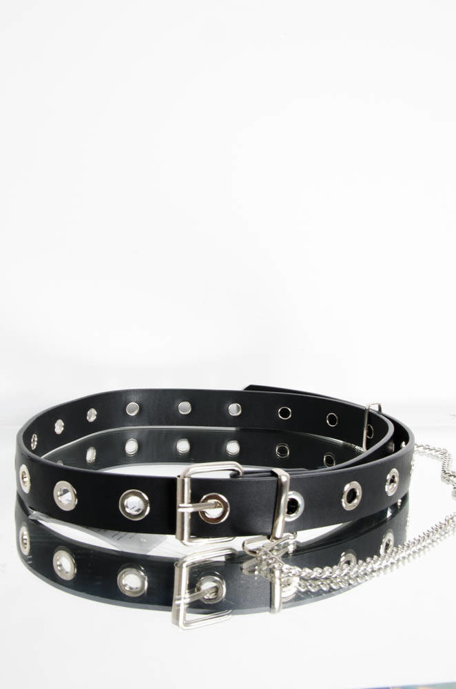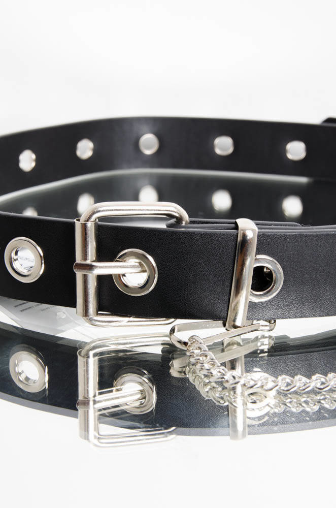 CZARNY PASEK Z METALOWYMI OCZKAMI I OZDOBNYM ŁAŃCUSZKIEM