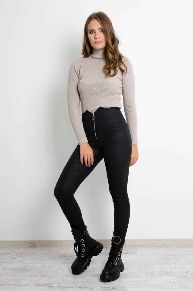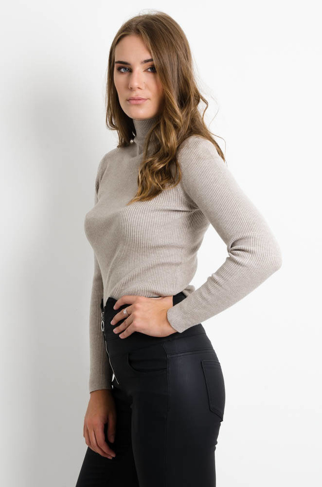 BEŻOWY SWETEREK PRĄŻEK Z PÓŁGOLFEM
