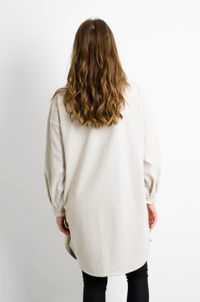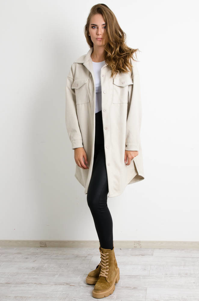 BEŻOWY DŁUGI PŁASZCZ KOSZULOWY