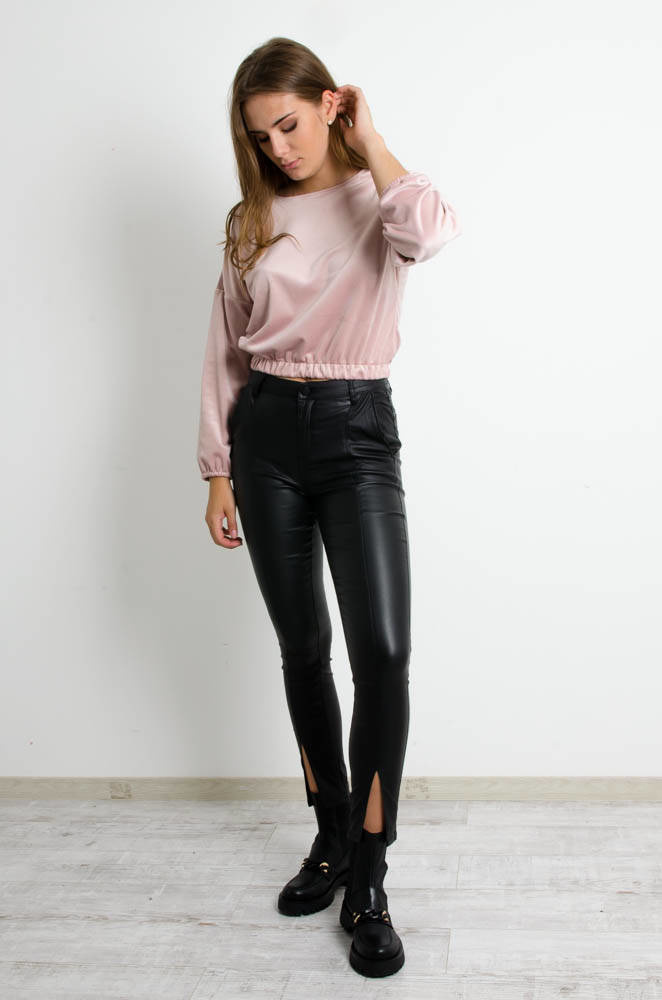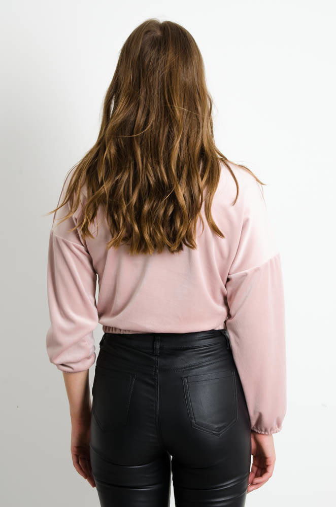RÓŻOWA KRÓTKA BLUZA WELUROWA