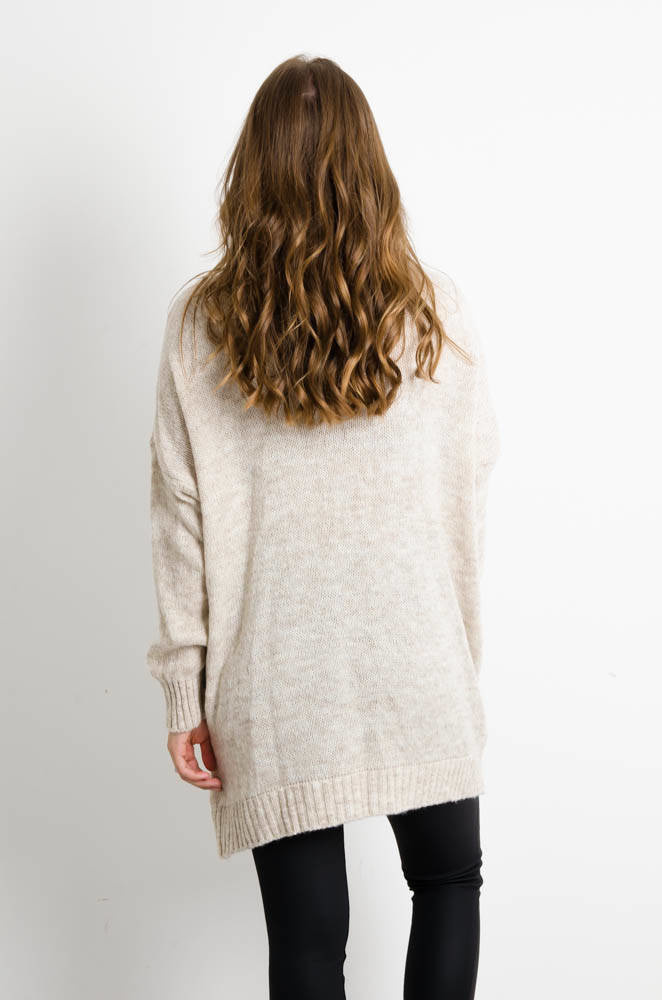 DŁUGI BEŻOWY SWETER Z KIESZENAMI