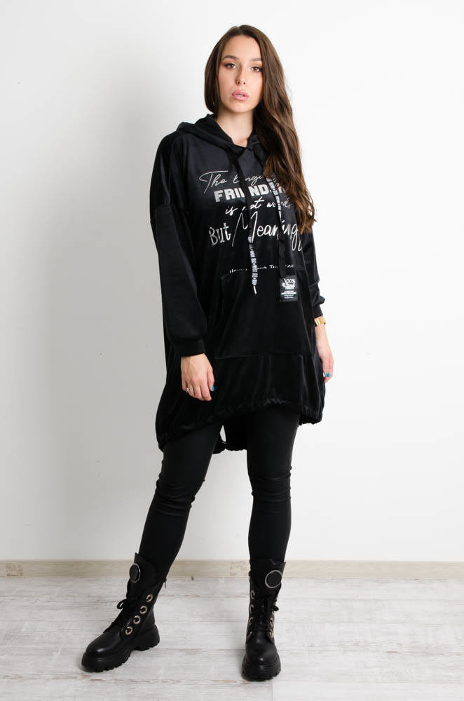 CZARNA ASYMETRYCZNA TUNIKA Z NAPISEM