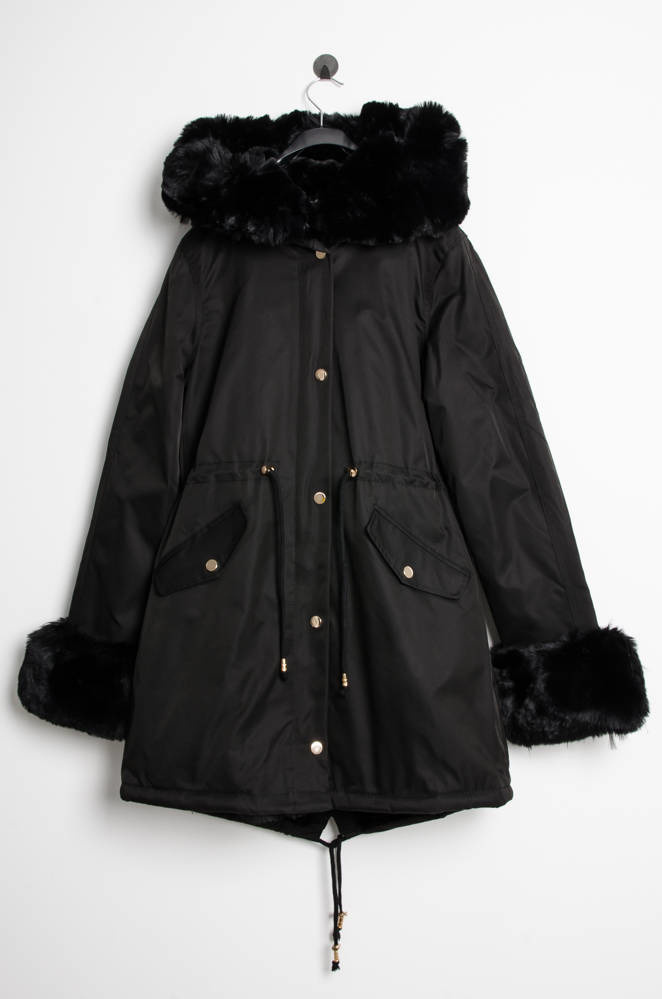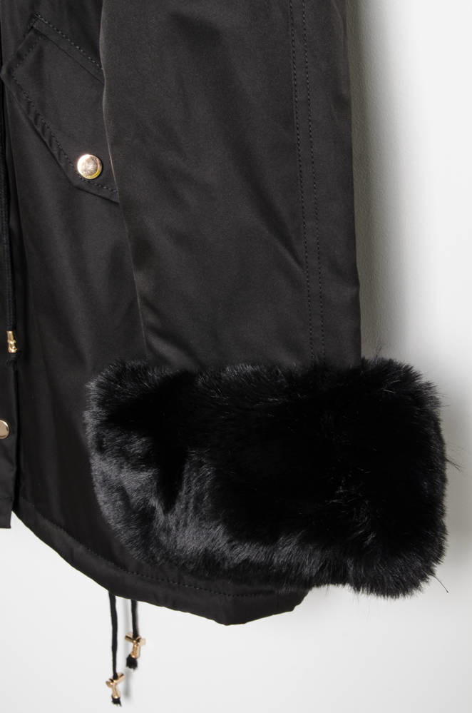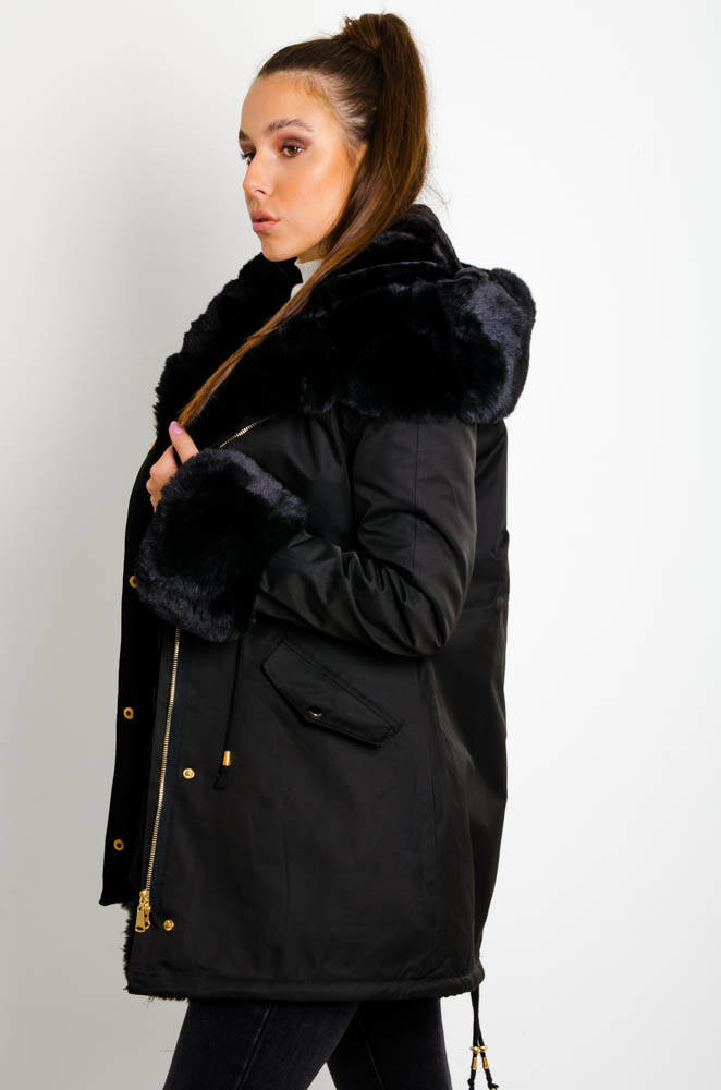 CZARNA KURTKA PARKA ZIMOWA Z ODPINANYM FUTERKIEM