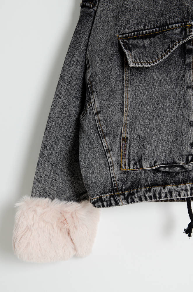 CZARNA JEANSOWA KURTKA Z ODPINANYM FUTERKIEM