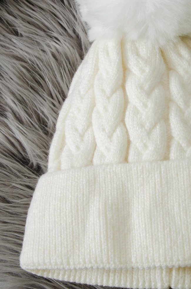 KREMOWA ZIMOWA CZAPKA PLECIONA Z POMPONEM