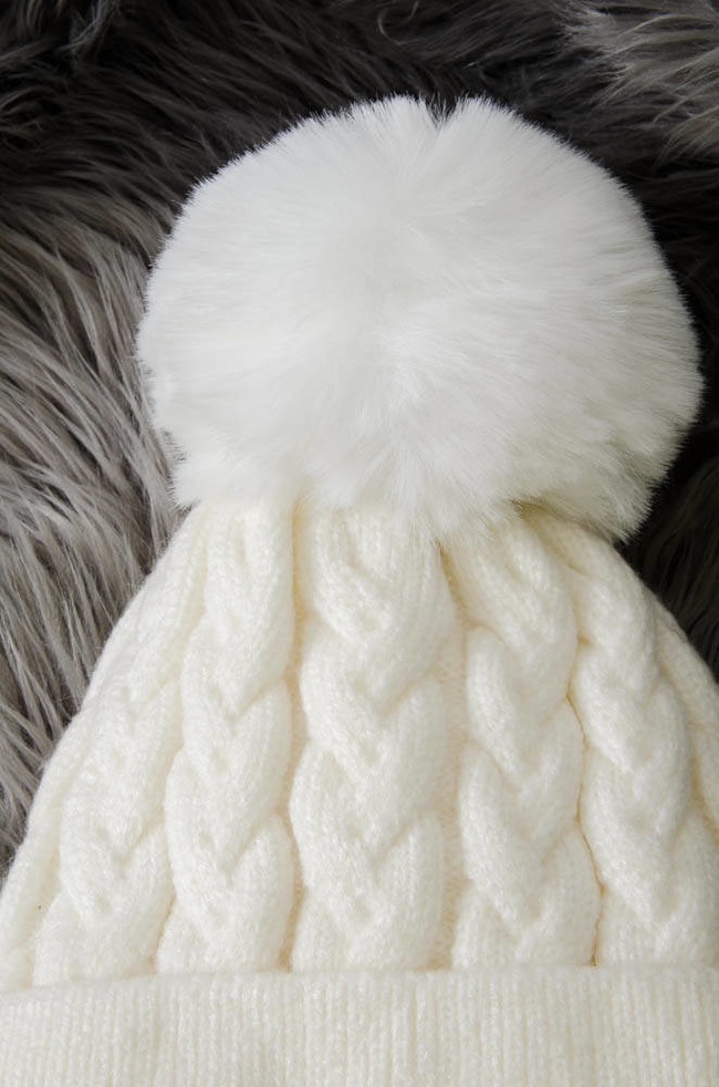 KREMOWA ZIMOWA CZAPKA PLECIONA Z POMPONEM