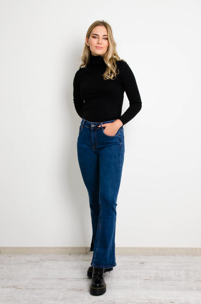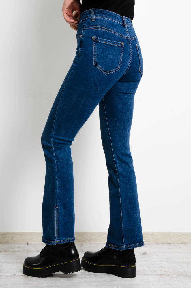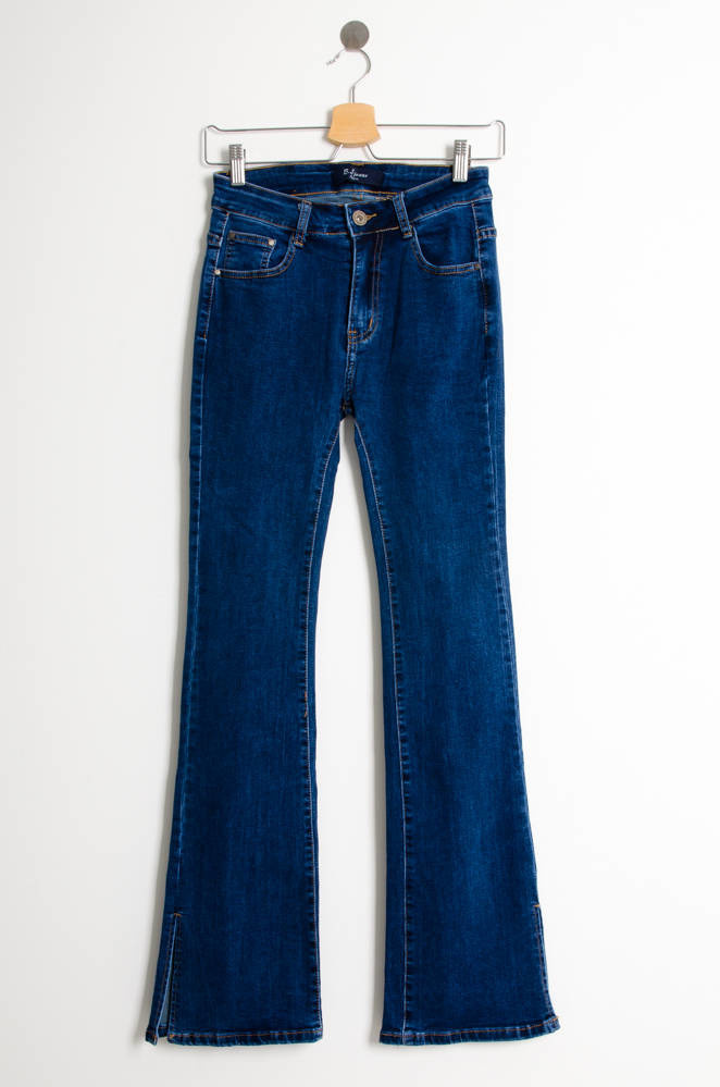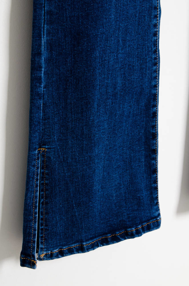 NIEBIESKIE SPODNIE JEANSOWE DZWONY Z ROZCIĘCIEM