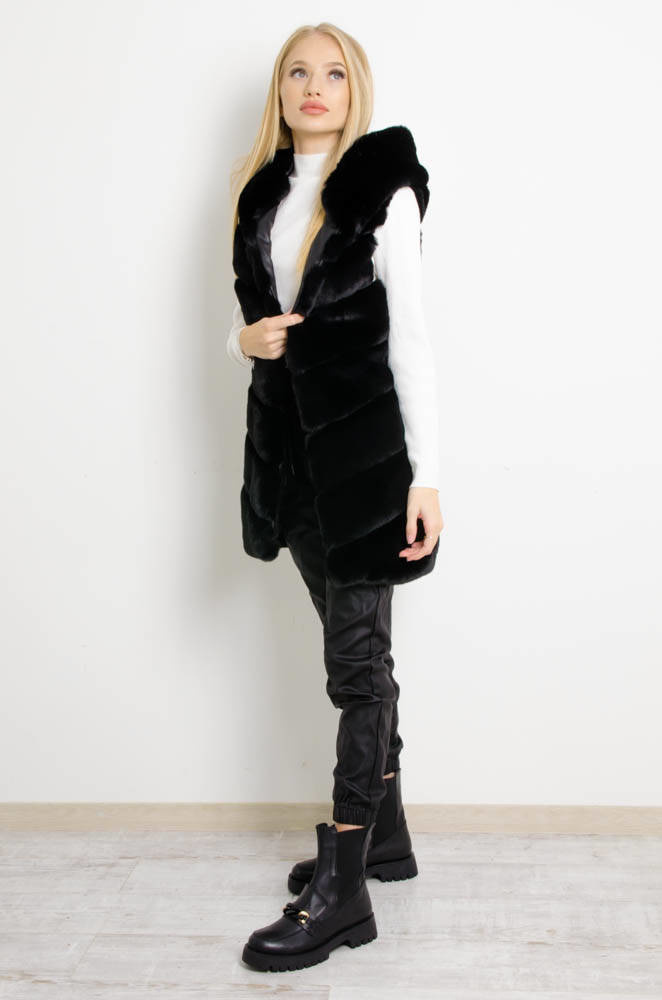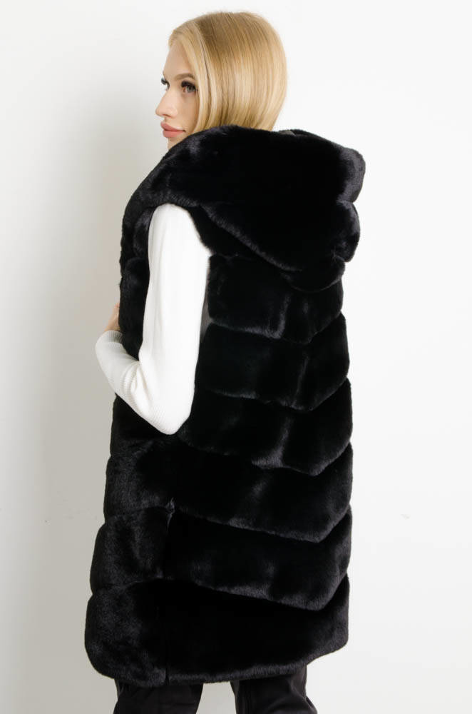 CZARNA FUTRZANA KAMIZELKA Z KAPTUREM (M-XXL)