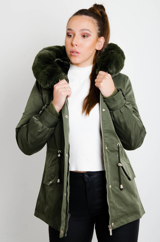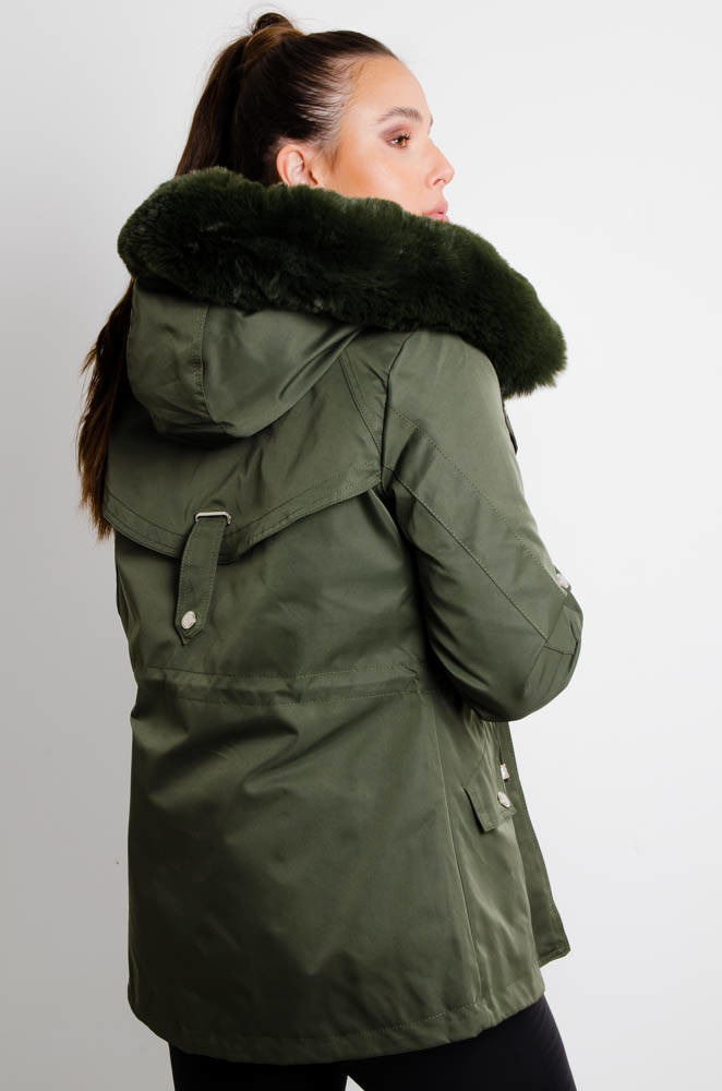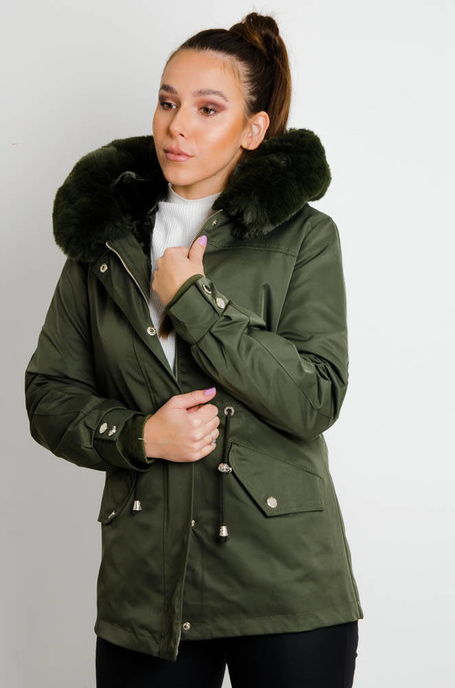 ZIELONA JESIENNO-ZIMOWA KURTKA PARKA NA MISIU