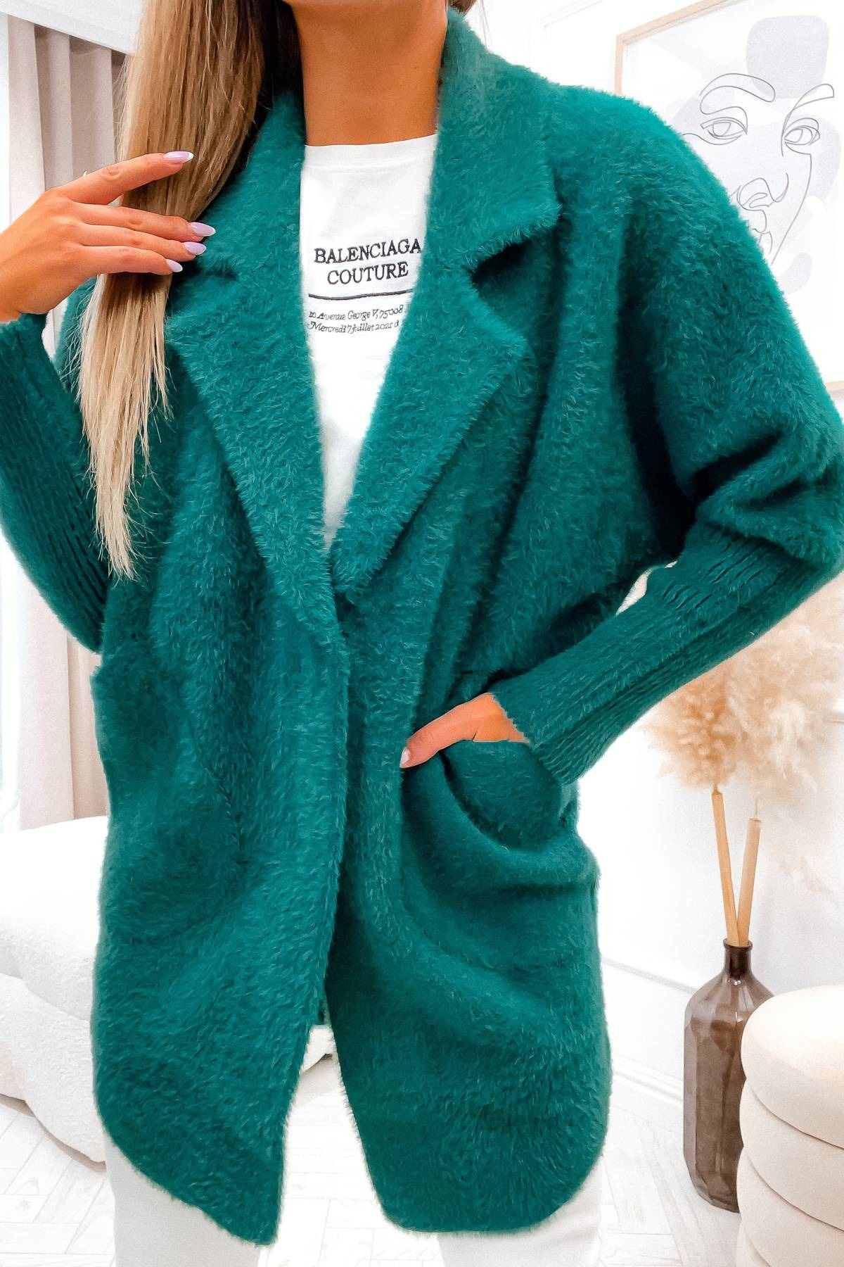 PŁASZCZ DŁUGI WEŁNIANY ALPAKA- ZIELONY
