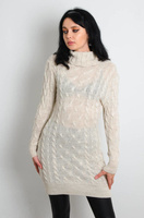 BEŻOWA SWETERKOWA SUKIENKA Z GOLFEM