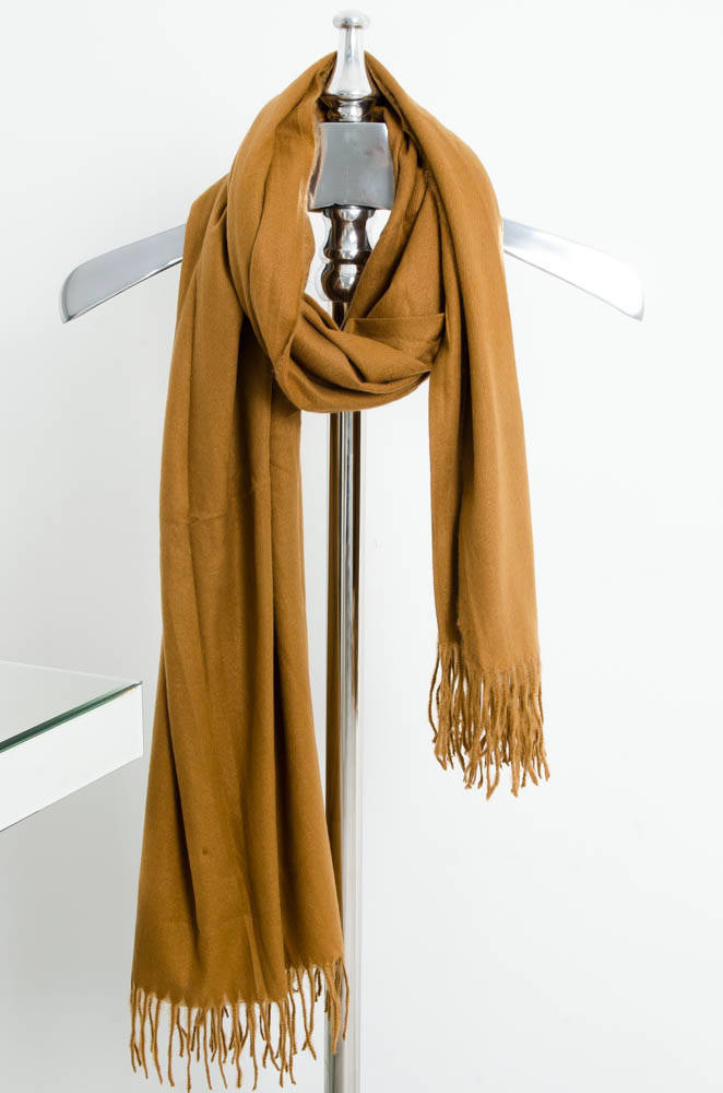 BRĄZOWY GŁADKI SZAL Z FRĘDZLAMI