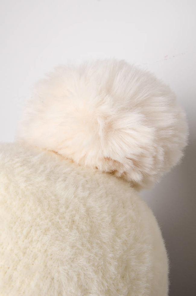 CZAPKA  ALPAKA Z POMPONEM- ECRU