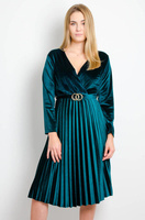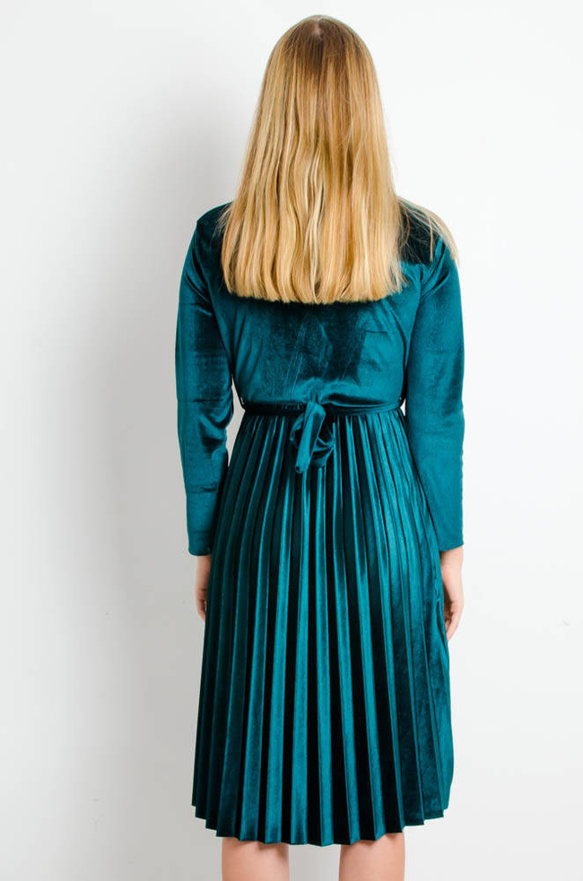 ZIELONA WELUROWA SUKIENKA Z PLISOWANIEM