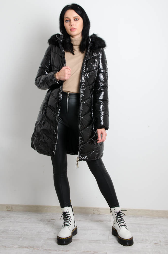 DŁUGA WINYLOWA KURTKA ZIMOWA