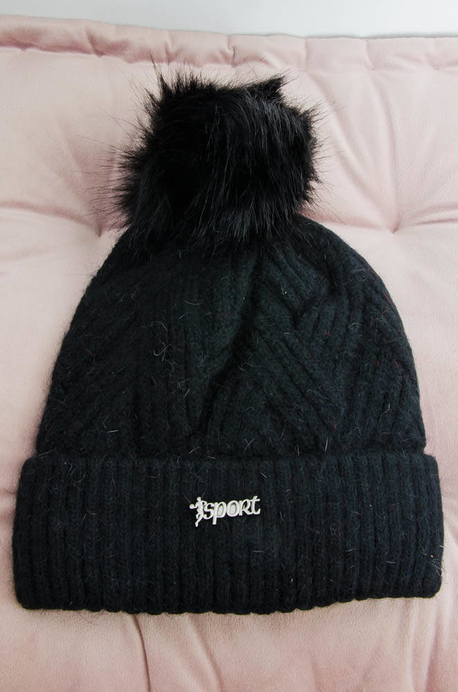 CZARNA OCIEPLANA CZAPKA Z POMPONEM