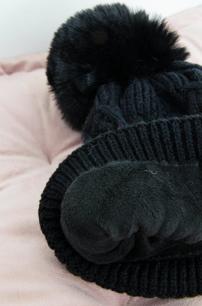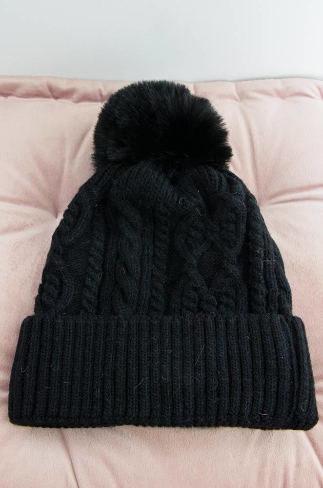 ZIMOWA CZARNA PLECIONA CZAPKA Z POMPONEM