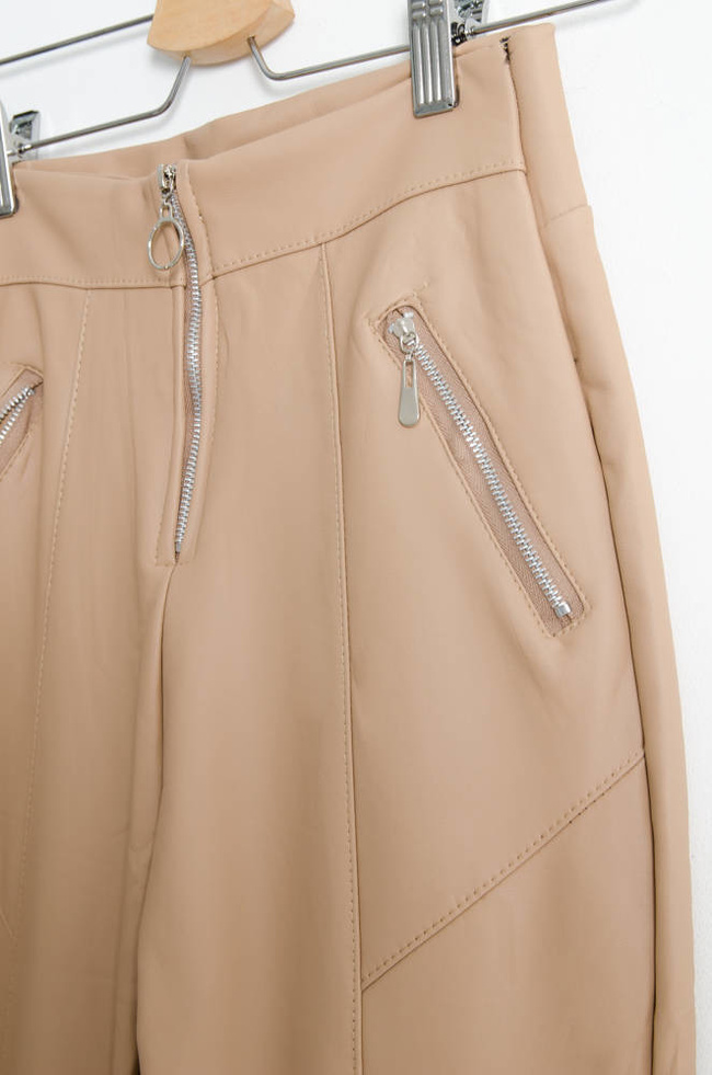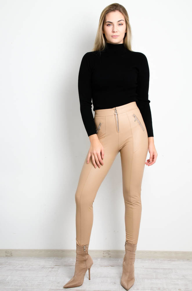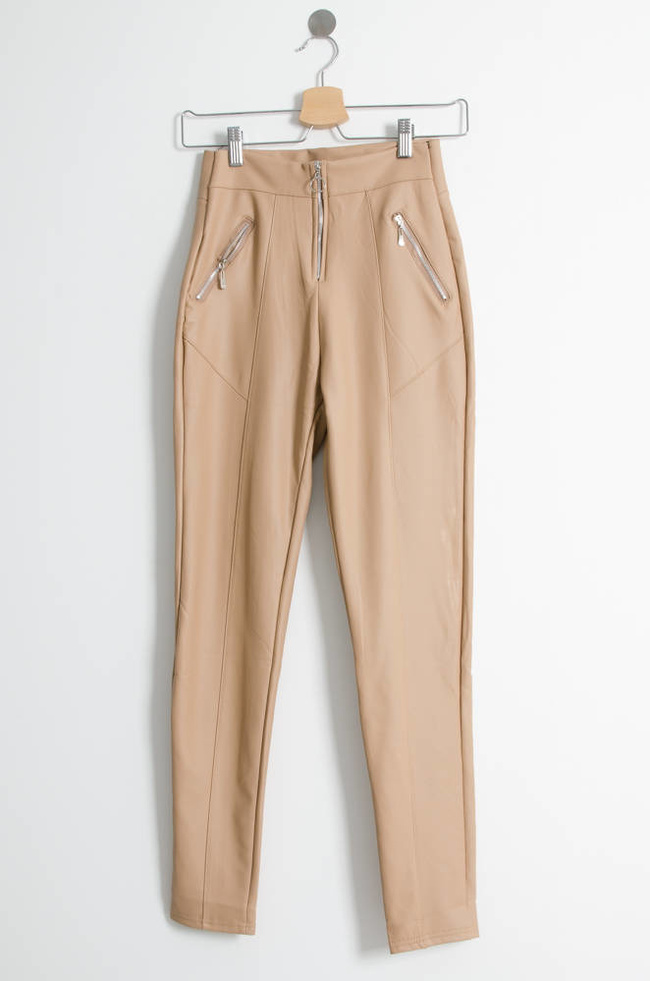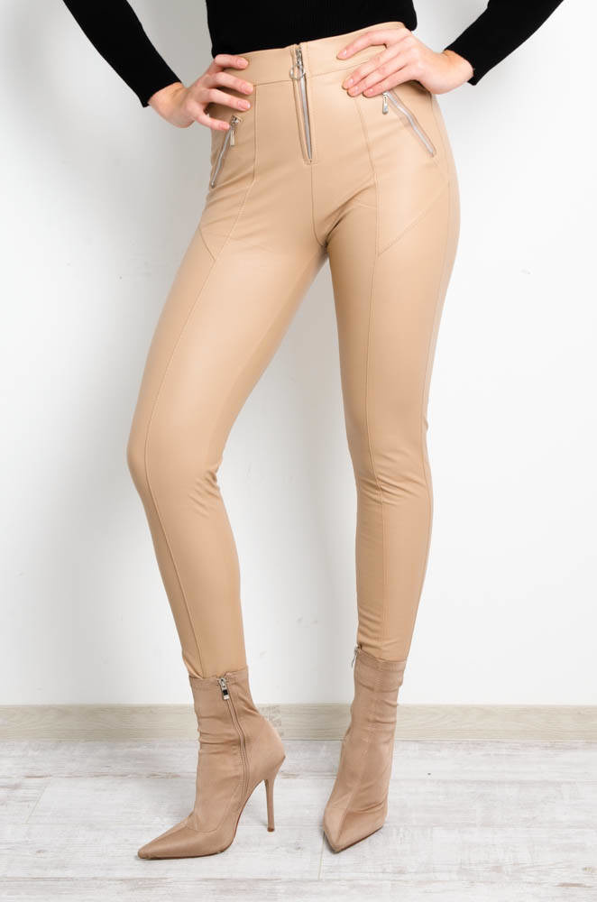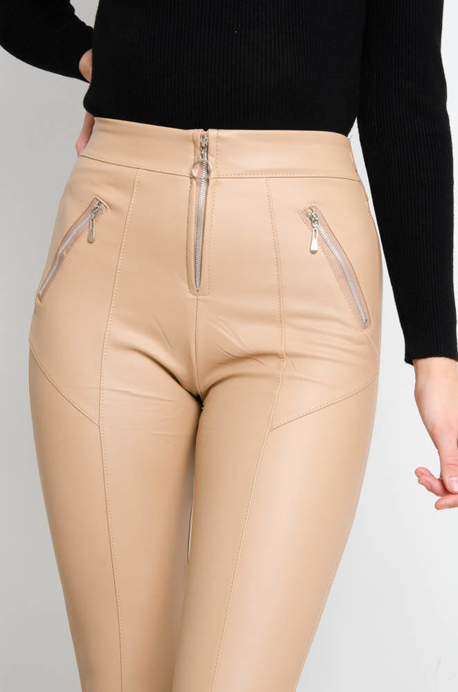 BEŻOWE WOSKOWANE LEGGINSY Z PRZESZYCIAMI- WYSOKI STAN