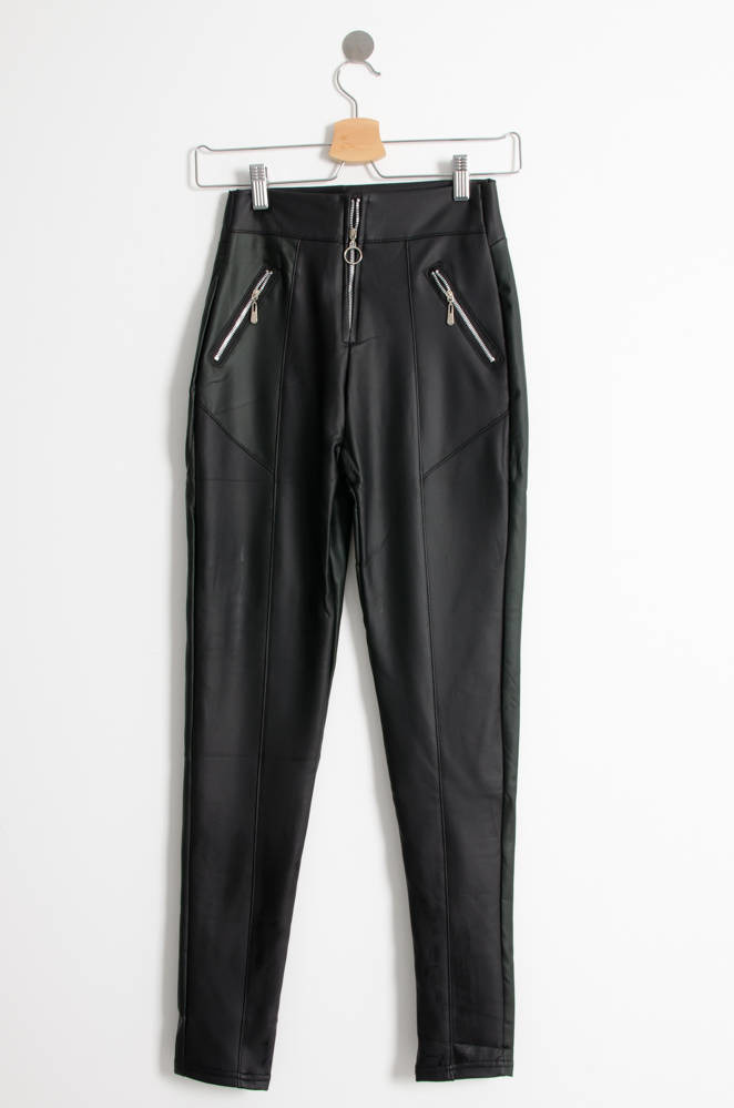 CZARNE WOSKOWANE LEGGINSY Z PRZESZYCIAMI- WYSOKI STAN