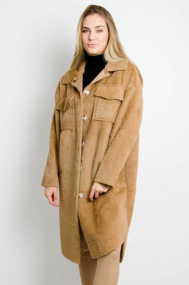 BRĄZOWY PŁASZCZ ALPAKA Z KIESZONKAMI