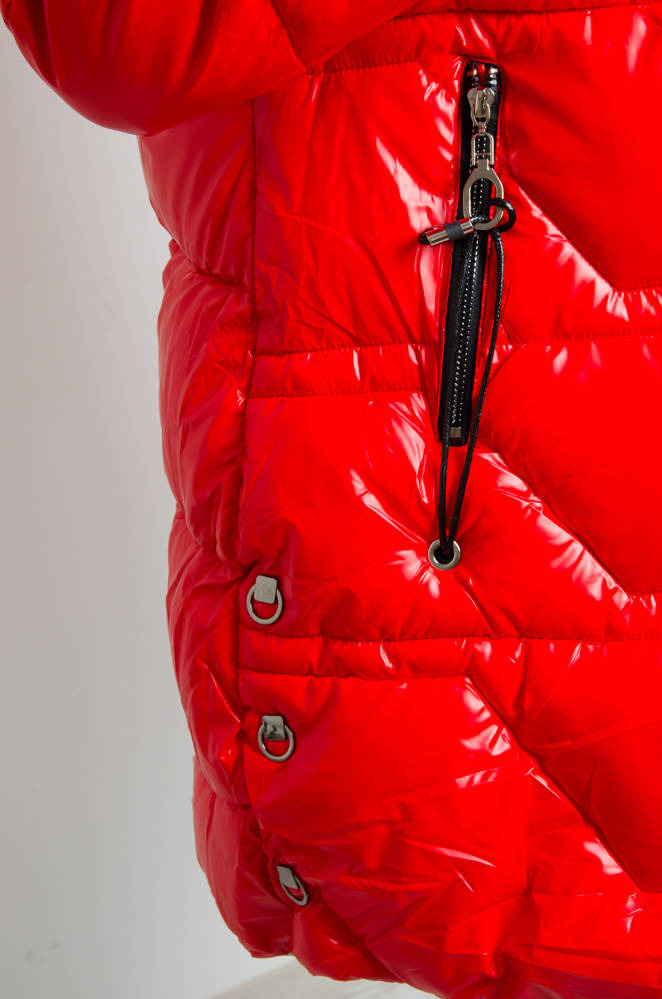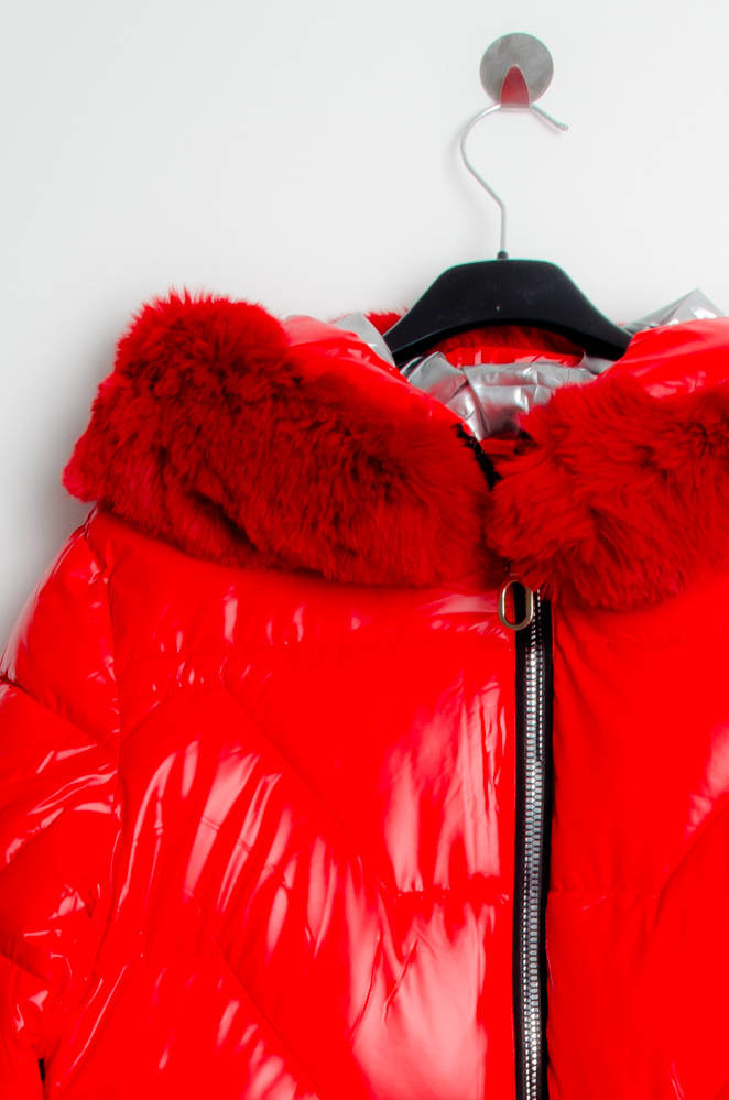 CZERWONA PIKOWANA KURTKA Z KAPTUREM .