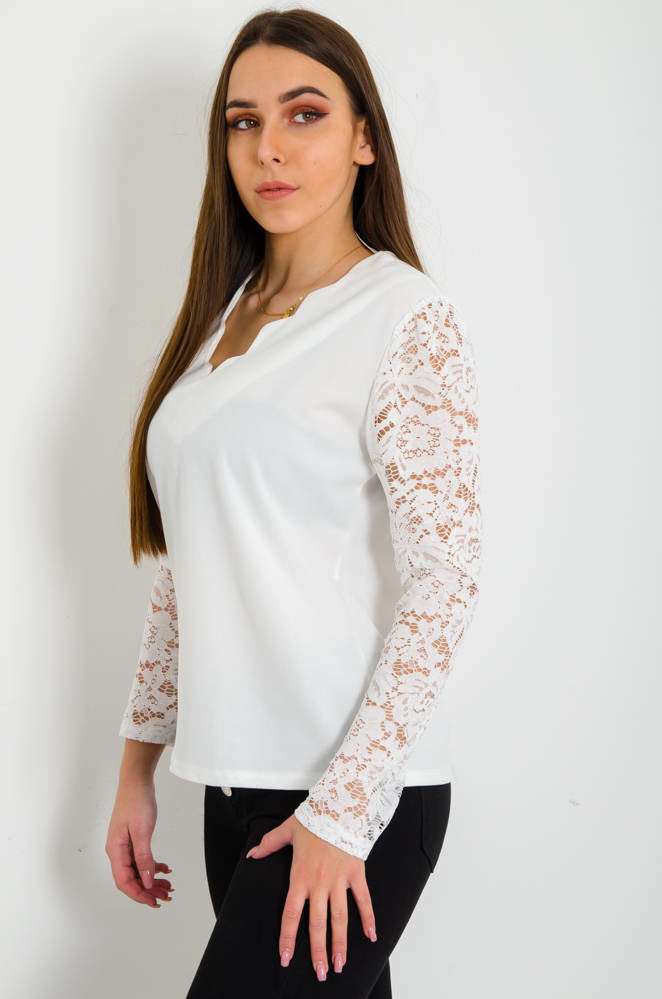 BIAŁA ELEGANCKA BLUZKA Z KORONKOWYMI RĘKAWAMI