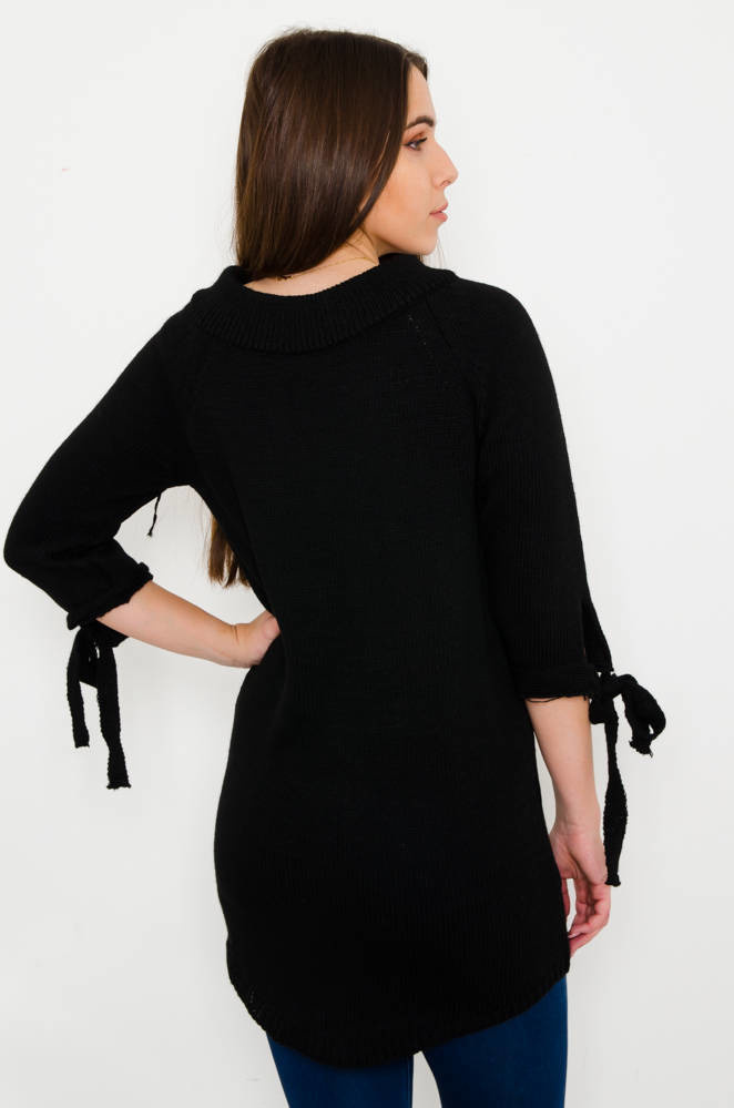 CZARNY SWETER ZE WSTAŻKĄ NA RĘKAWIE
