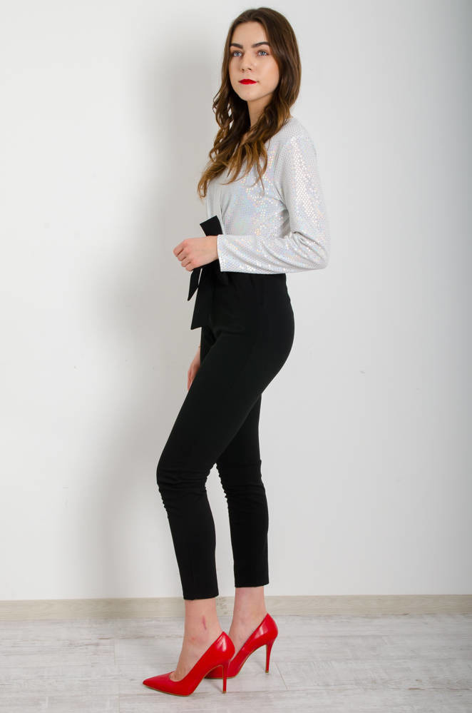 CZARNO-BIAŁY DŁUGI ELEGANCKI KOMBINEZON Z CEKINAMI