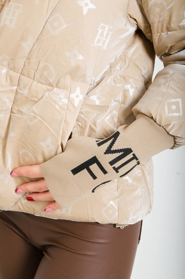 BEŻOWA PUCHOWA KURTKA WE WZORY LOUIS POŁYSKUJACA