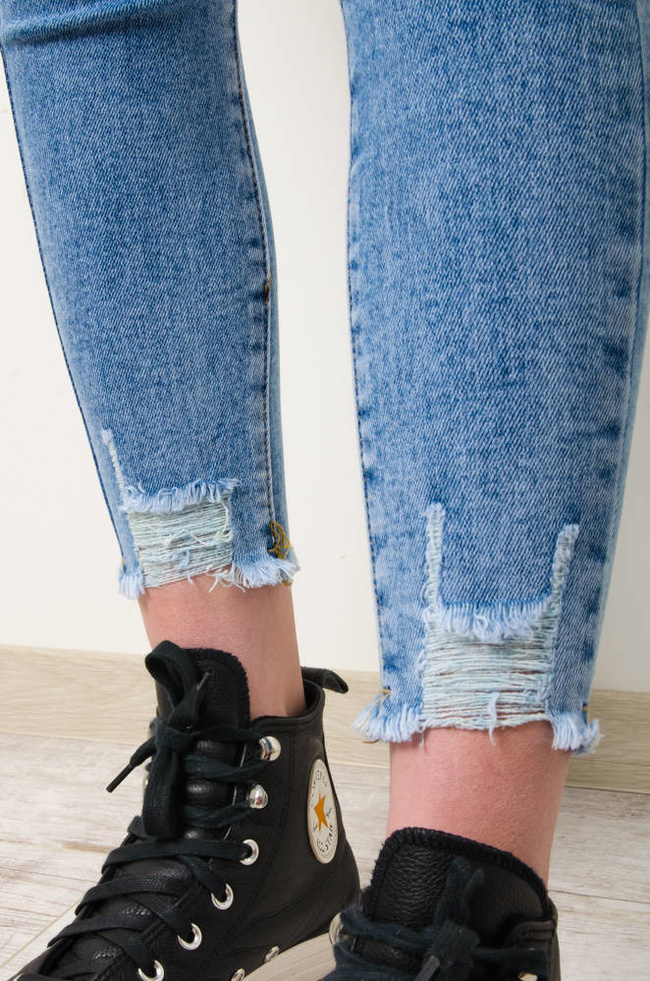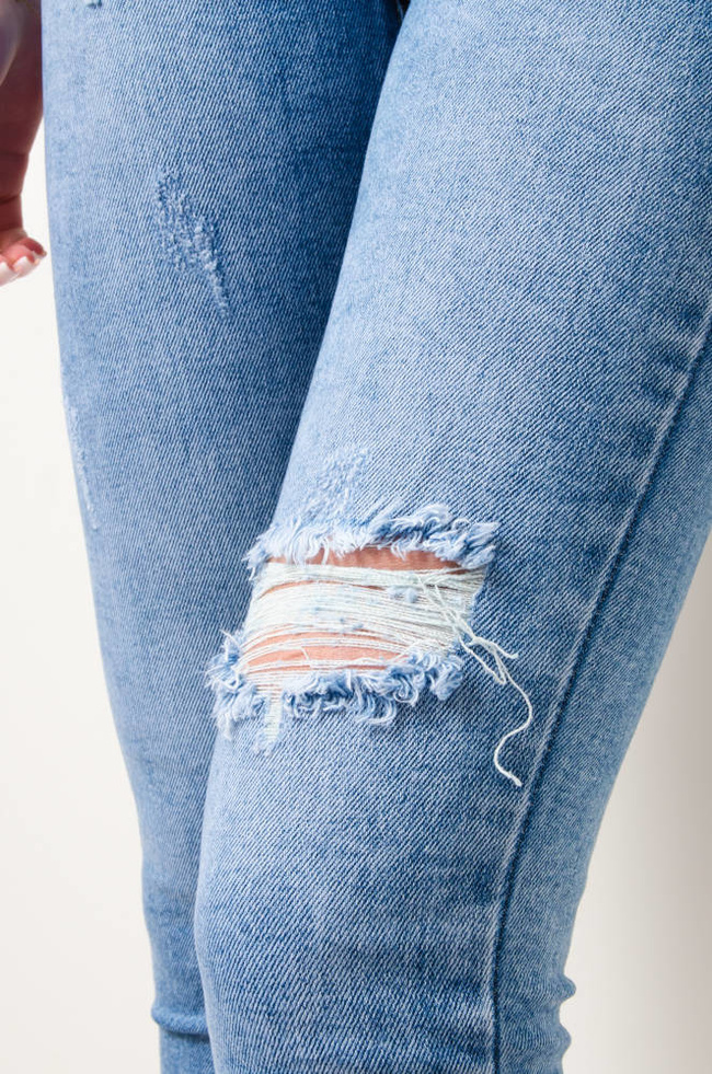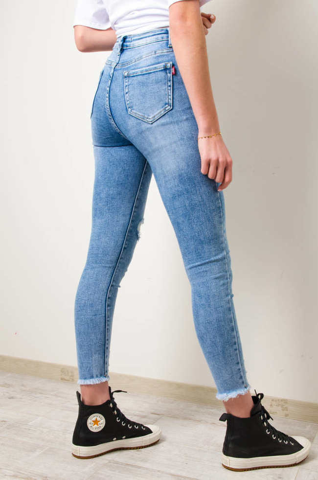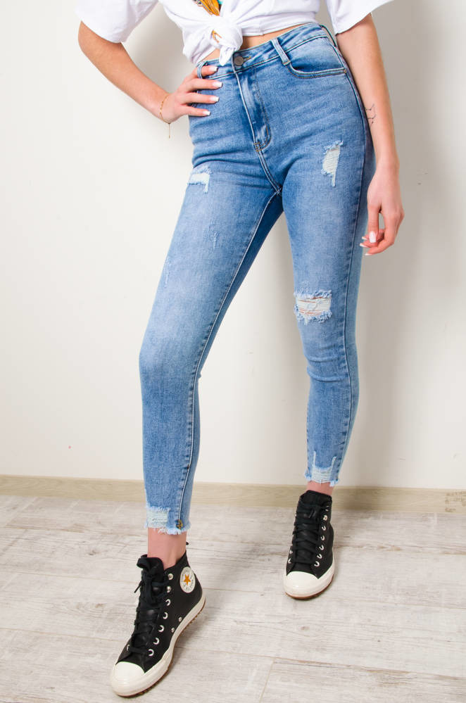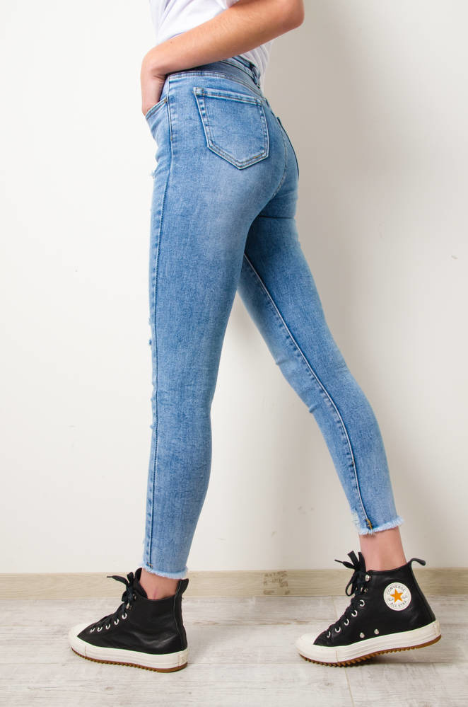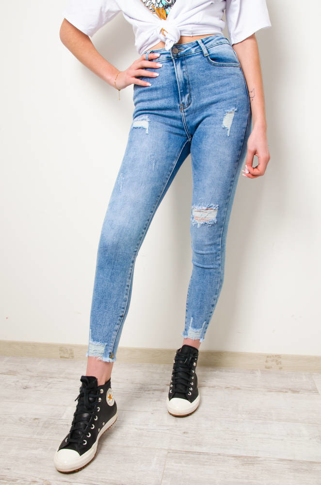 JASNE SPODNIE JEANSOWE Z PRZETARCIAMI-WYSOKI STAN